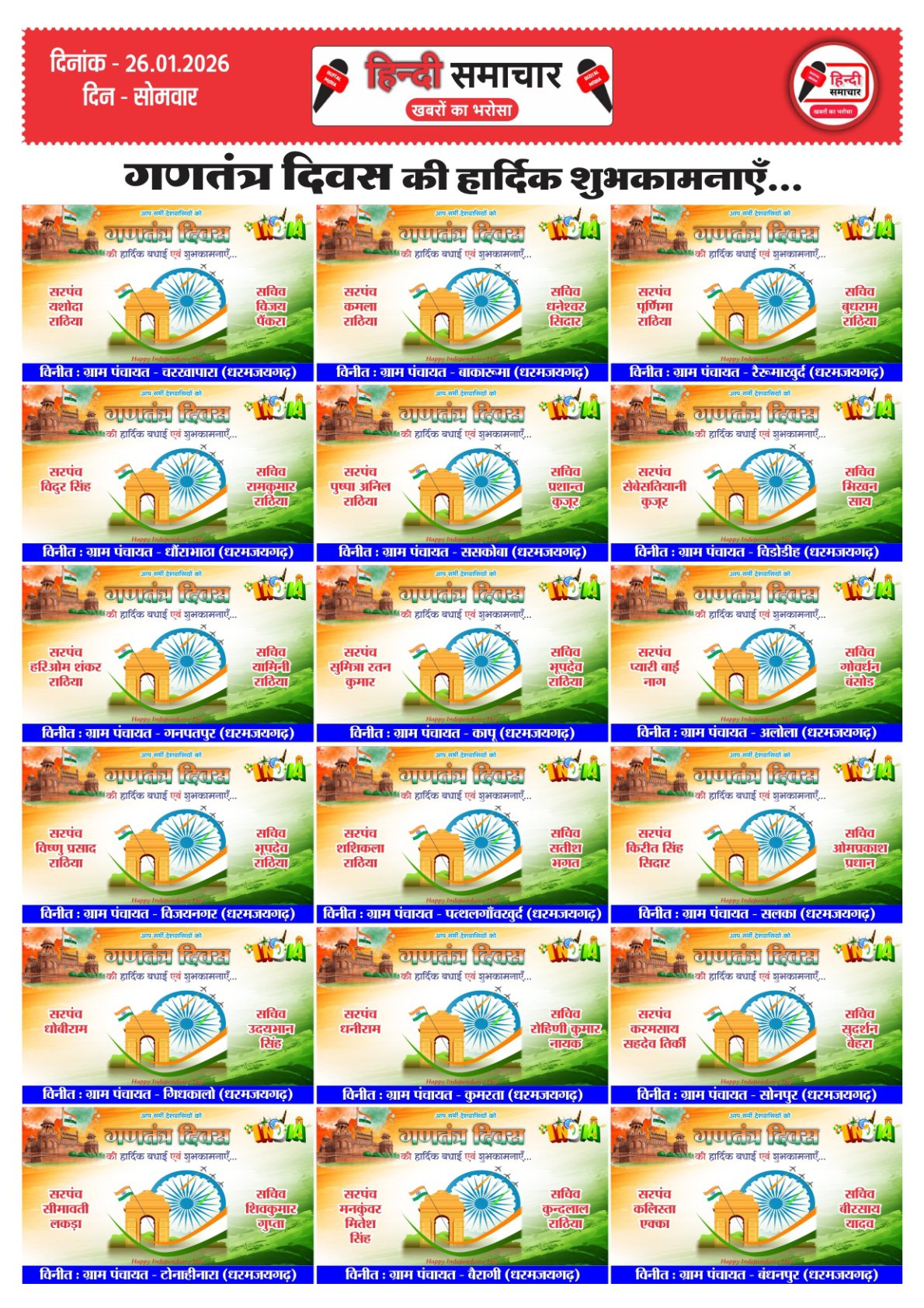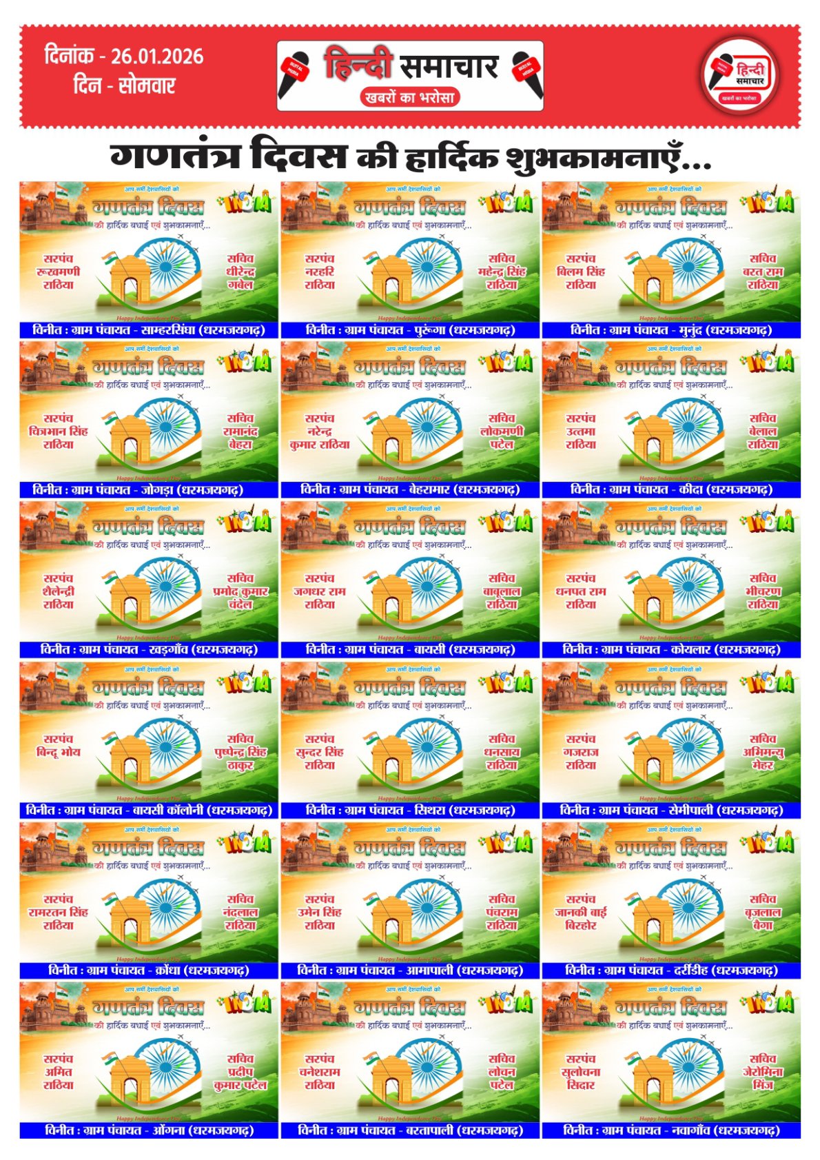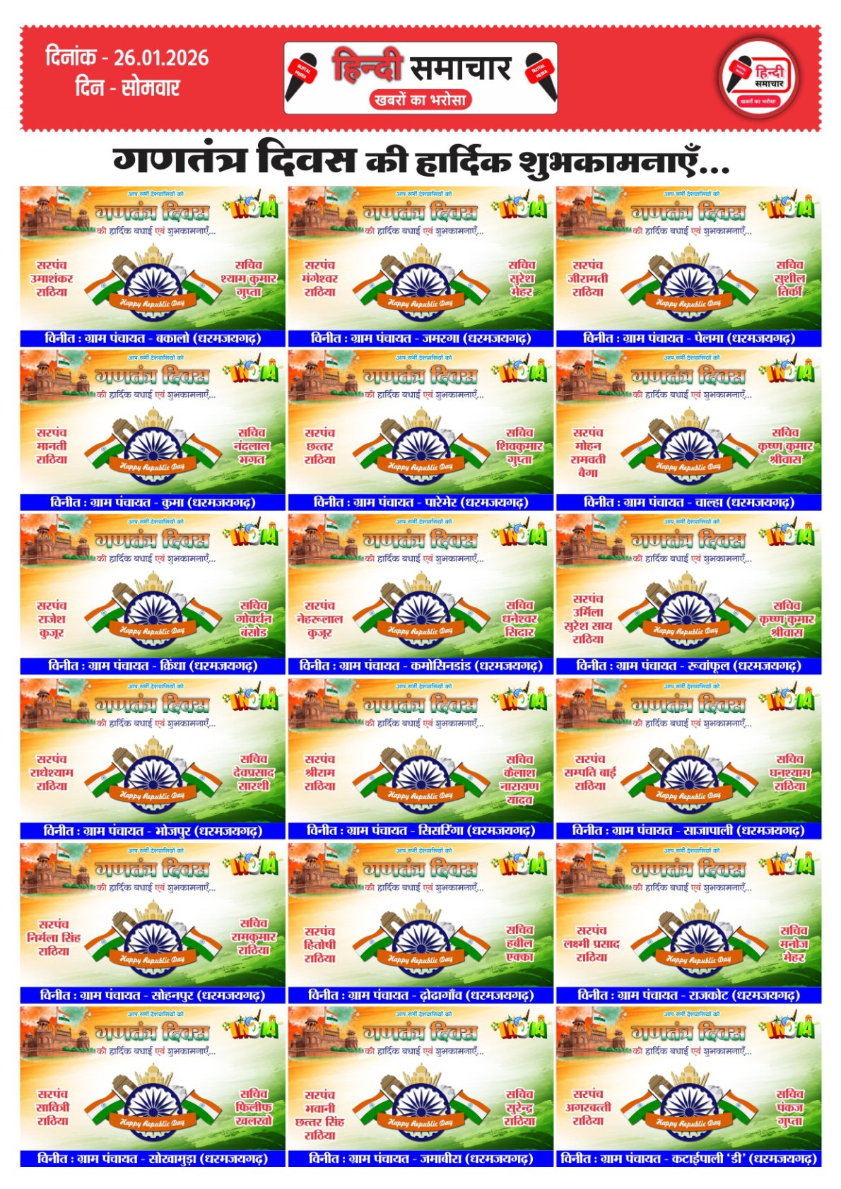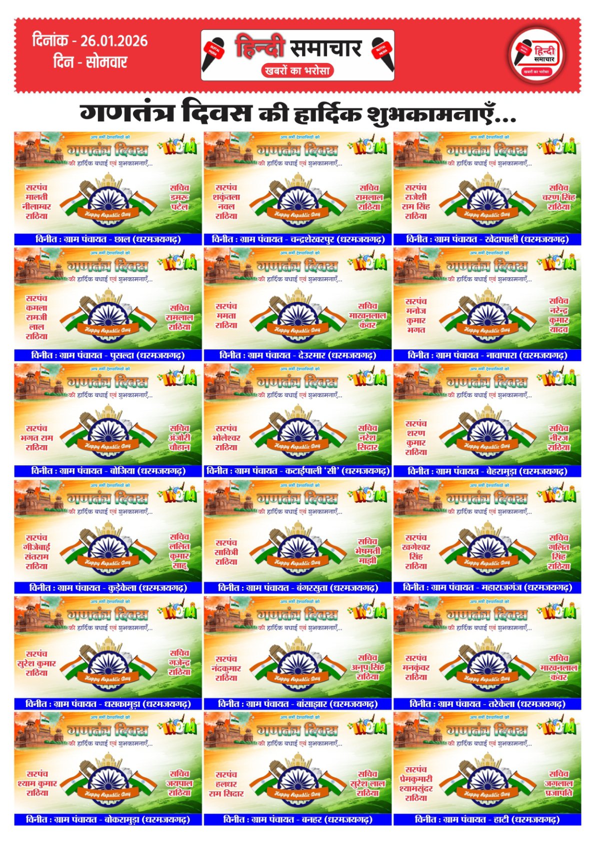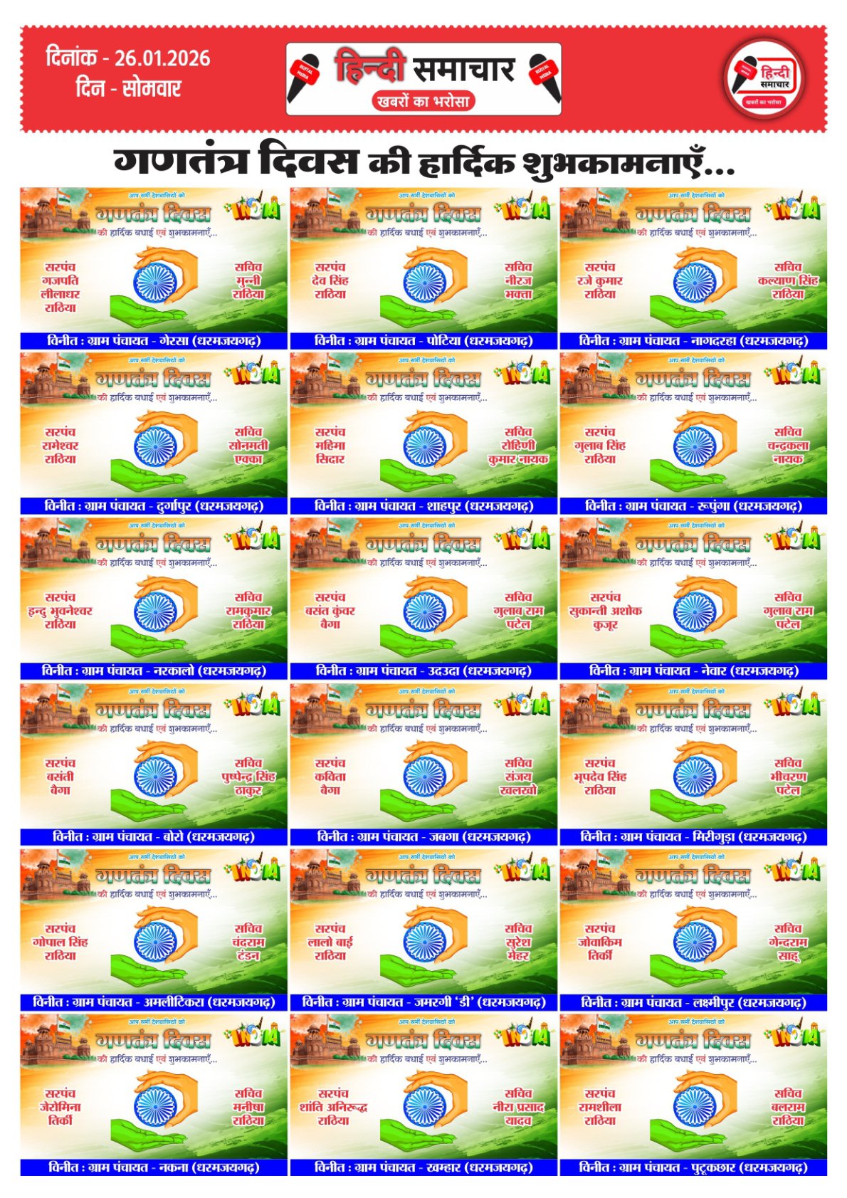 हिन्दी समाचार : धरमजयगढ़ धरमजयगढ़ विधानसभा क्षेत्र से धीरेन्द्र सिंह मालिया को भारतीय जनता पार्टी का जिला…..