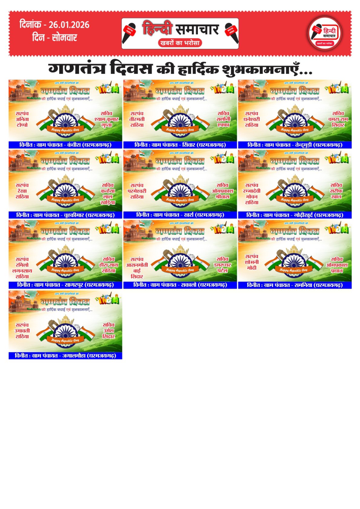 हिन्दी समाचार : धरमजयगढ़ धरमजयगढ़ विधानसभा क्षेत्र से धीरेन्द्र सिंह मालिया को भारतीय जनता पार्टी…..