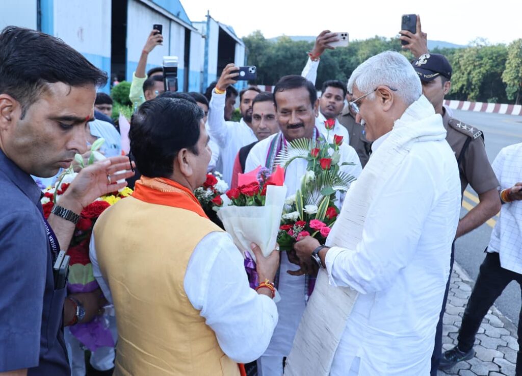 रायगढ़ । भारत सरकार के पर्यटन एवं संस्कृति मंत्रालय के केन्द्रीय मंत्री श्री गजेन्द्र सिंह शेखावत आज अंतरराष्ट्रीय ख्यातिप्राप्त चक्रधर समारोह में शामिल होने रायगढ़ पहुंचे। उनके आगमन पर ओपी जिंदल एयरपोर्ट, रायगढ़ में गरिमामय एवं आत्मीय स्वागत किया गया। इस अवसर पर भारत सरकार के आवासन एवं शहरी कार्य मंत्रालय के केन्द्रीय राज्य मंत्री श्री तोखन साहू, छत्तीसगढ़ शासन के पर्यटन, संस्कृति, धार्मिक न्यास एवं धर्मस्व विभाग मंत्री श्री राजेश अग्रवाल, राज्यसभा सांसद श्री देवेंद्र प्रताप सिंह, लोकसभा सांसद श्री राधेश्याम राठिया सहित स्थानीय जनप्रतिनिधिगण एवं गणमान्य नागरिक उपस्थित रहे।