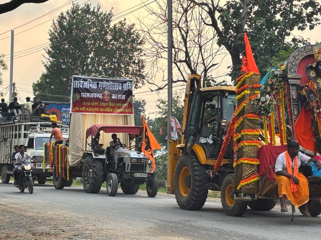 धरमजयगढ़ । धरमजयगढ़ के केंद्र यानी कि क्लब ग्राउंड में विराजमान भगवान श्री गणेश को विसर्जन के अंतिम दिन रविवार को धूमधाम से विदा किया गया.इस दौरान जेसीबी में गणपति की पूर्णिमा को भव्य रूप से सजाया गया और कर्मा पार्टी द्वारा अगुवाई करते हुए शोभायात्रा निकाली गई जो क्लब ग्राउंड से पीपरमार होते हुए सिविल लाइन और फिर बस स्टैंड होते हुए नीचेपारा के जयस्तंभ चौक उसके बाद मांड नदी के लिए निकली जहां भगवान गणेश को अंतिम विदाई देने नगर के लोग नम आंखों से भगवान श्री गणेश का आशीर्वाद लिए।