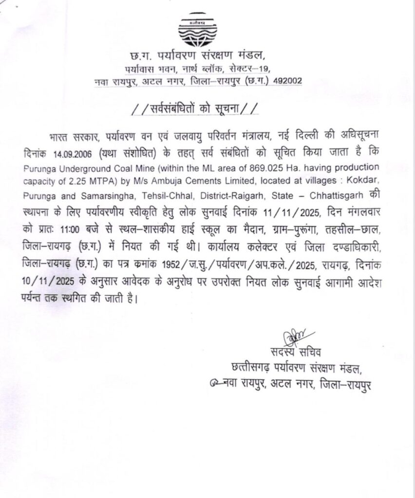 ब्रेकिंग न्यूज :- ग्रामीणों की हुई जीत, पुरूंगा की जन सुनवाई स्थगित